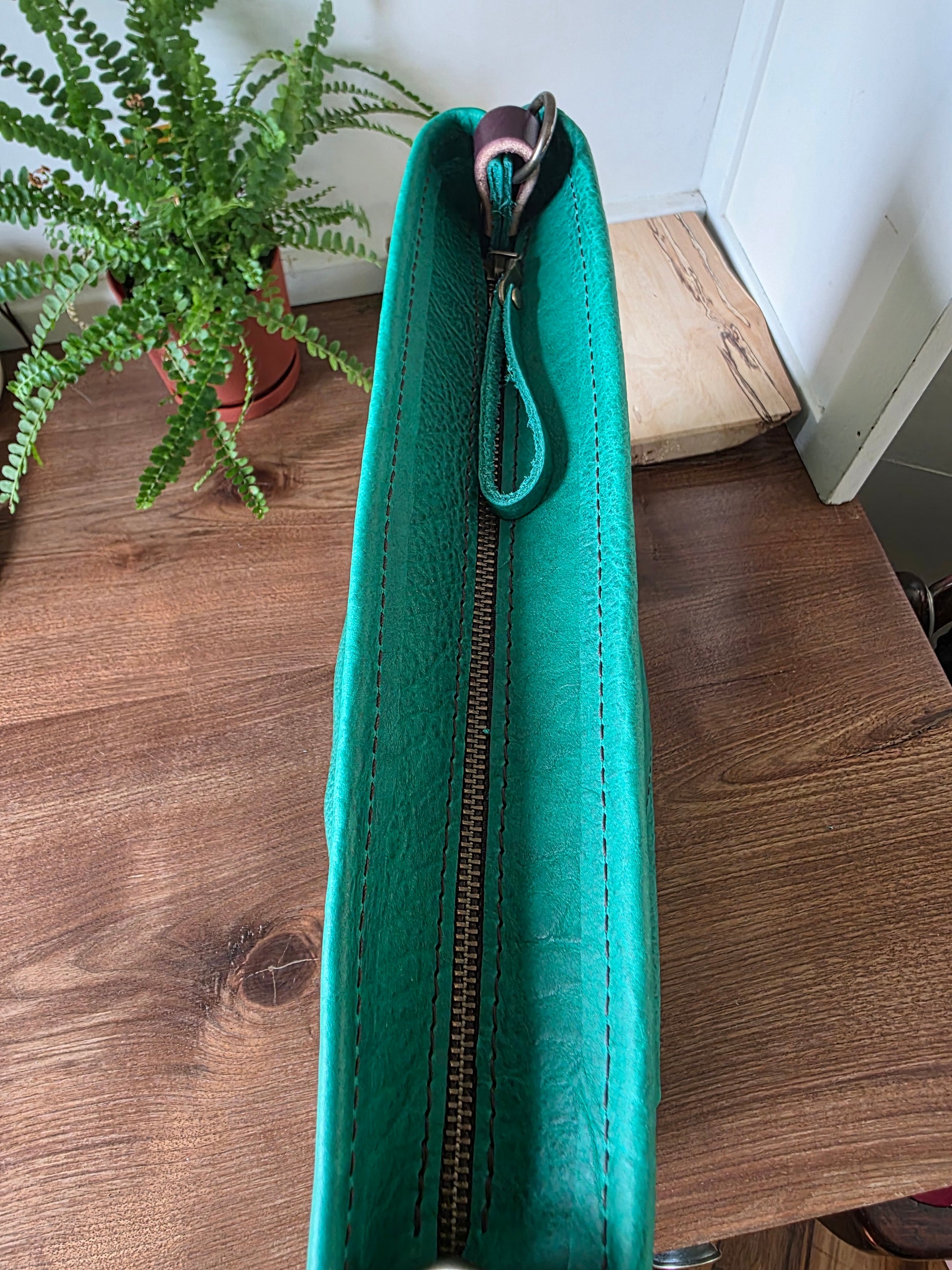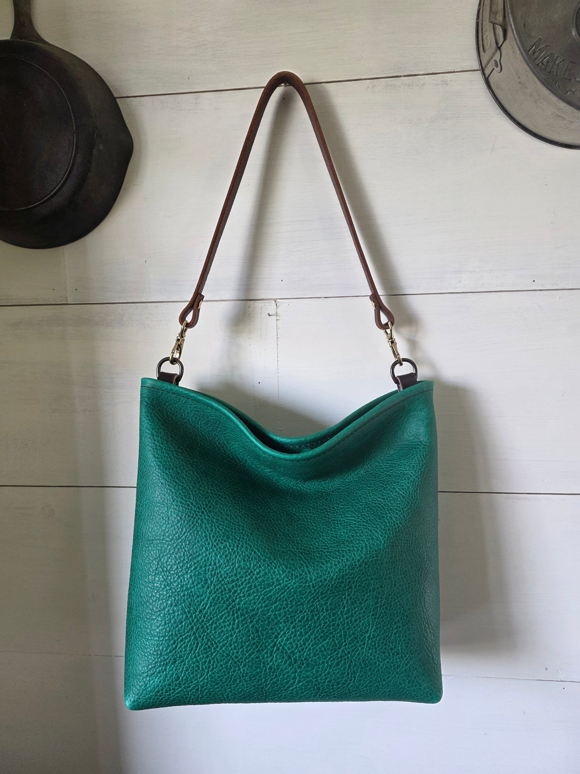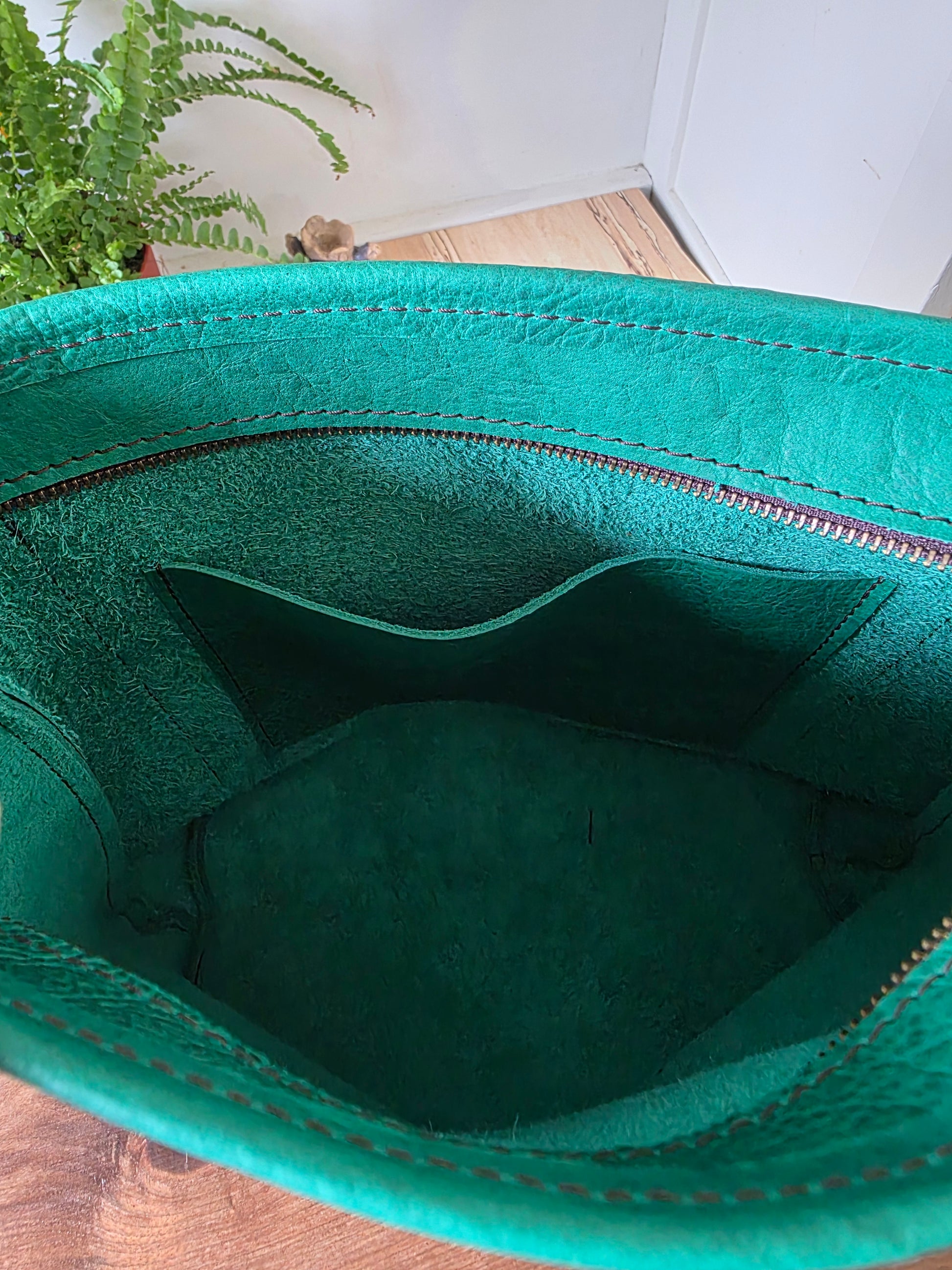 Medium Bucket in Green Bison. A soft squishy Bison leather with vibrant color.